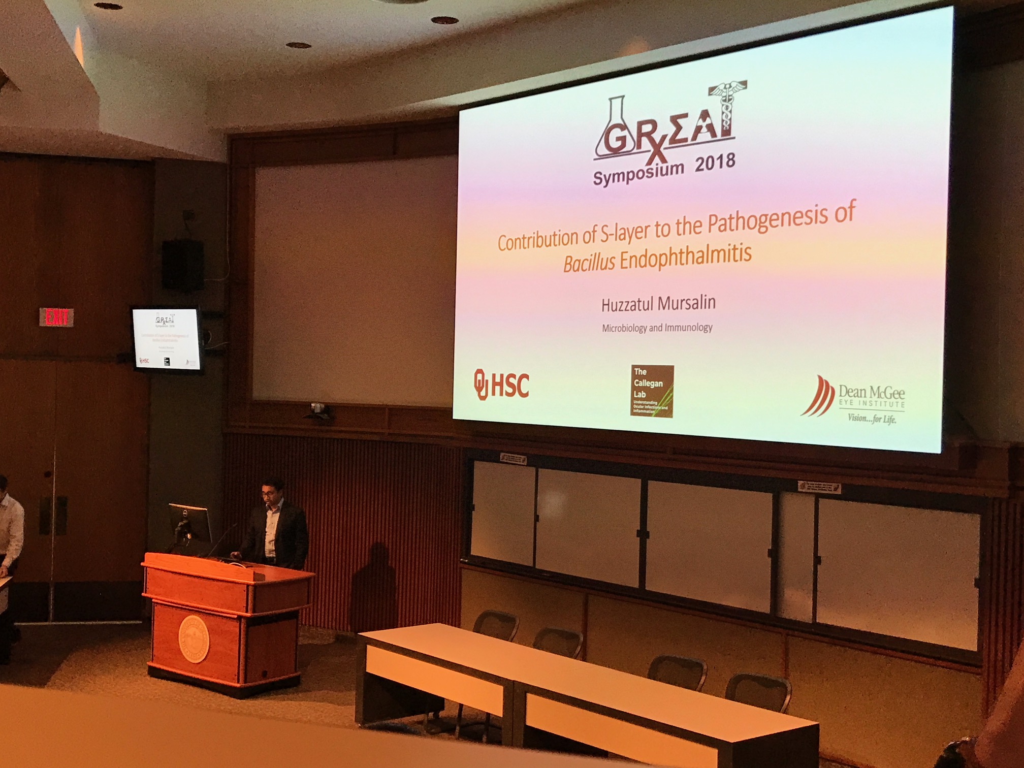 Mursalin presented Role of Bacillus S-Layer Protein in Host-Cell Interactions During Endophthalmitis to the OUHSC Microbiology and Immunology Department today. Great job Mursalin!