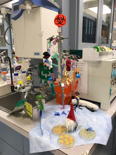 The lab opened up again in May and we all donned PPE and socially distanced in the far corners of the lab to continue working and remain productive. Unfortunately, Mursalin’s and Dr. Jamshidi’s ARVO presentations were cancelled, as was Erin’s presentation at ASM. Dr. Callegan’s presentation at ISER and a few invited talks were postponed, as was our annual OU Vision Workshop. Erin presented a seminar in the Department of Microbiology and Immunology titled “Bacillus Immune Inhibitor A Metalloproteases Contribute to Endophthalmitis“, and Mursalin presented a seminar at OU Vision Club titled “Cell Wall to CXC Chemokines: A Search for Therapeutic Targets in Bacillus Endophthalmitis“. We published a few more papers during the year (see Publications) and were awarded a new R21 from the NEI (see Funding). A new bridge grant from the Presbyterian Health Foundation will begin in January. We wish everyone Happy Holidays and a happy, healthy, and less chaotic 2021.